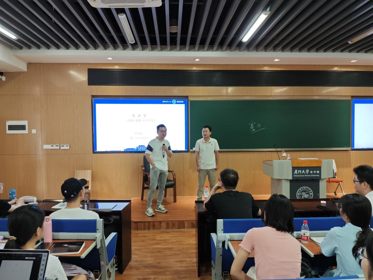 法学院院长陈鹏教授向同学们简要介绍许瑞超老师的学术经历与科研成果,热烈欢迎他以厦门大学教师身份走上讲台。希望许老师扎根讲台,努力践行教书育人的使命,培养出更多优秀的法律人才。