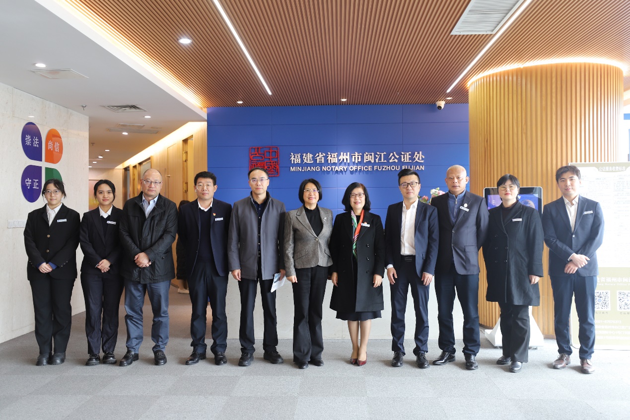 2025年2月12日,法学院党委书记何丽新、院长陈鹏、副院长王杏飞、教授郑金雄一行来到福州市闽江公证处走访交流、看望校友。