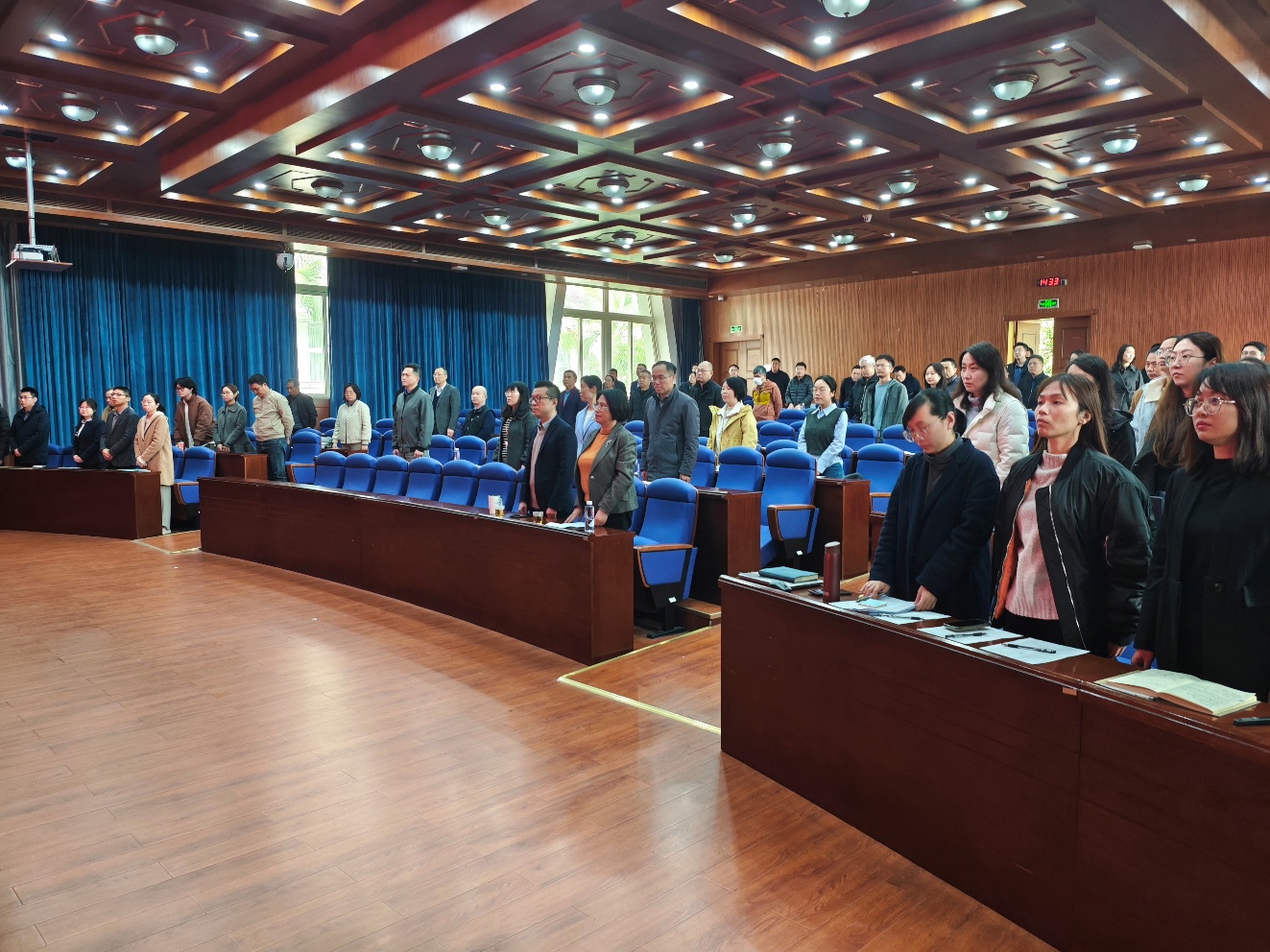 大会结束前,全体教职工起立,奏唱厦门大学校歌。