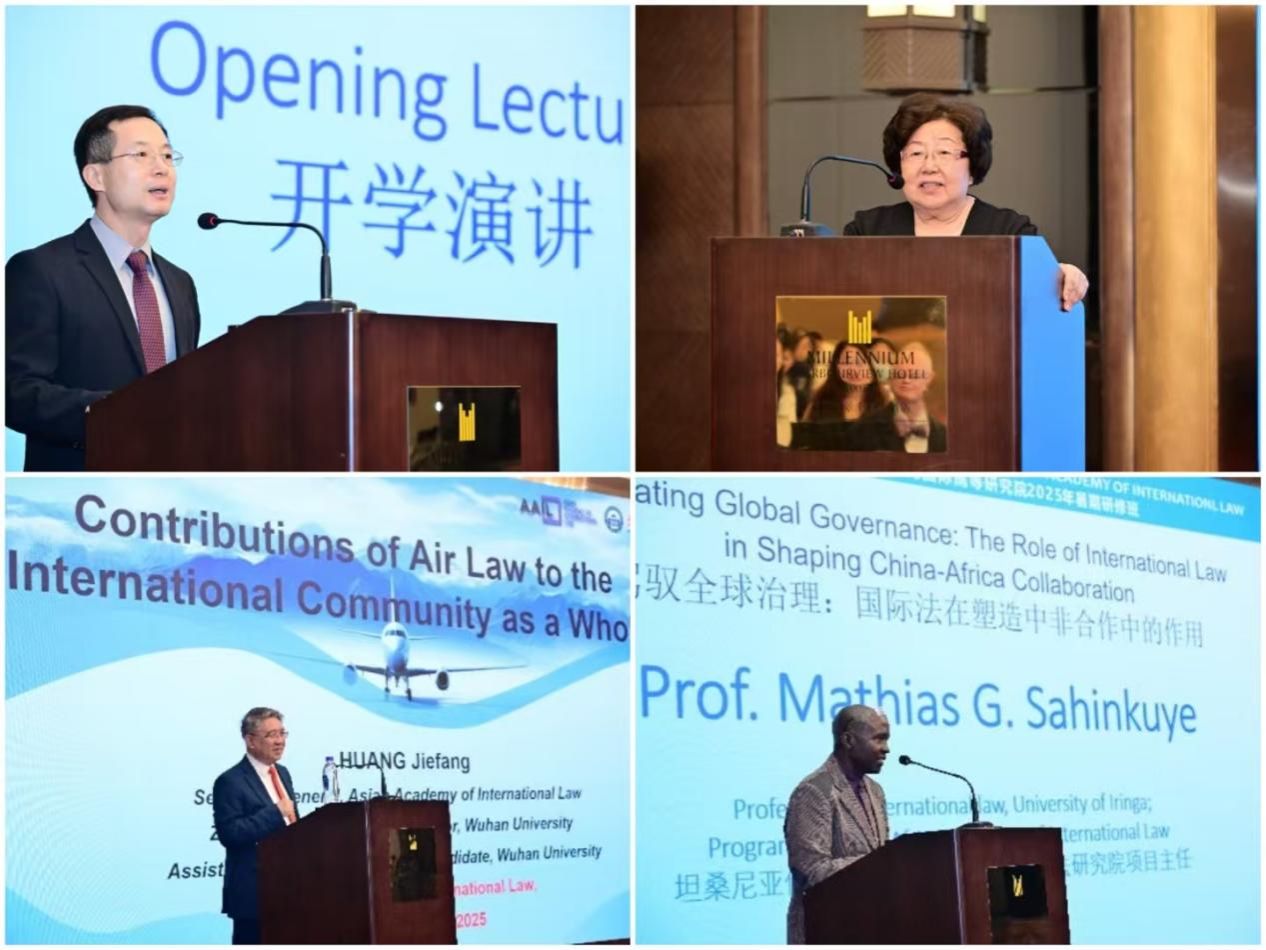 开学演讲环节由研究院董事会秘书长、香港大学法学院副院长赵云教授主持。张月姣教授以《国际争端解决的演变、现状与未来展望》为题,系统梳理了国际争端解决机制的发展历程。黄解放教授在题为《航空法对整个国际社会的贡献》的演讲中,深刻剖析了航空法对全球治理的影响。Mathias G. Sahinkuye教授则通过《驾驭全球治理:国际法在塑造中非合作中的作用》的专题演讲,深入探讨了国际法在南南合作中的创新路径。