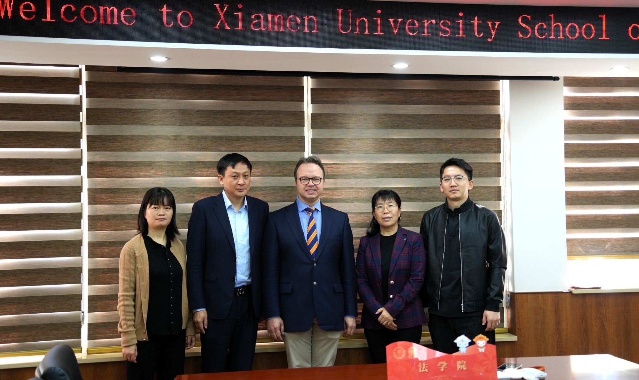 会上,Dominik Wanner教授介绍牛津大学伍斯特学院情况,随后从项目起源、课程设置、师资力量、生源情况等方面全面介绍课程项目。韩秀丽教授对来宾一行表示欢迎,随后简要介绍我院情况,重点对“中国-OECD联合培养税务法学硕士项目(COTP)”、“厦门国际法高等研究院暑期研修班”等学院特色项目进行介绍。双方主要围绕牛津大学伍斯特学院证书课程项目展开交流,就项目合作达成初步共识。
