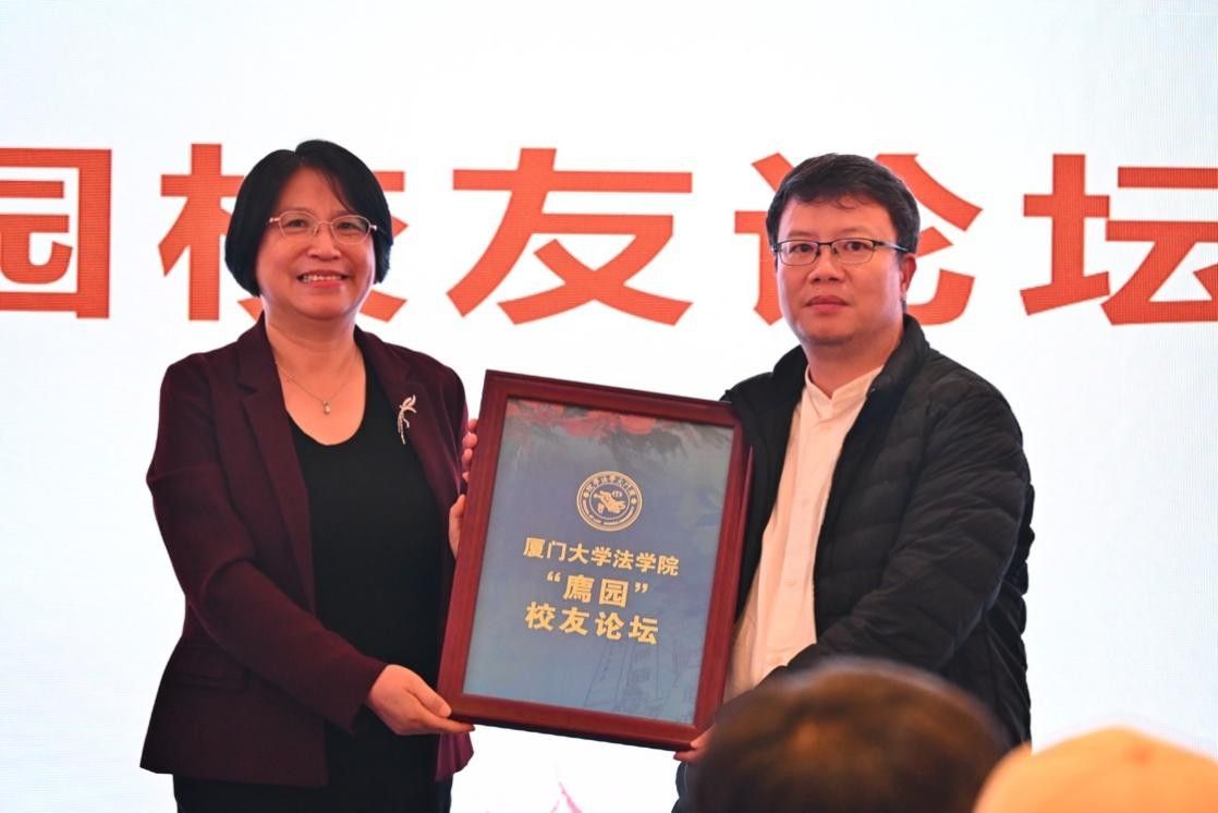 论坛最后,廌园校友论坛牌匾交接到厦门大学法学院北京校友会会长张旭荣手中,下一期论坛将在北京举办。