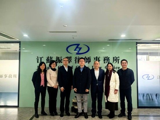 法学院一行在换届活动后走访曹辉校友所在的江苏振泽律师事务所,共同探讨涉外法治人才培养和法律实务问题。