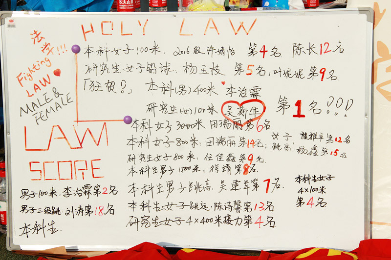 两天的赛程中,我院李治霖同学在本科男子400米中夺得第一名,在男子100米中夺得第二名;吴斯华在研究生女子100米短跑项目中勇夺第二;唐永春获得研究生男子组5000米第二名。极大地鼓舞了我院参赛选手的士气。