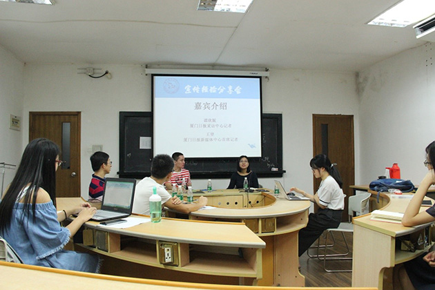 2016年7月18日晚,法学院院庆宣传工作经验交流分享会于法学院B520举行。会议由法学院团委书记高斌主持。厦门日报新媒体中心首席记者王望与厦门日报采访中心记者谭欣妮到现场与院庆宣传组的同学们交流了许多非常宝贵的宣传经验。法学院实验室、网络管理负责人胡方舟老师、宣传中心负责人陈晓忆、研究生会网宣部部长张玲萍、学生会宣传部部长蔡晨昕以及院庆宣传组的其他工作人员也参与了本次交流活动。