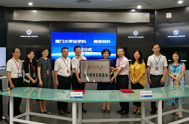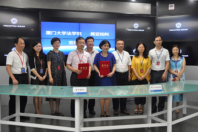 2016年7月14日下午,我院与厦门市美亚柏科信息股份有限公司在美亚柏科公司总部签订共建合作协议,共同建设“厦门大学法学教育实践基地”。出席本次签约仪式的有学院党委书记李智勇、院长宋方青、党委副书记周蕾、郭锦星、副院长林秀芹、团委书记高斌,美亚柏科股份有限公司总经理申强、副总经理赵庸、公司数字法律服务事业部总经理仲丽华,以及丁丽瑛、郭春镇等学院师生代表。