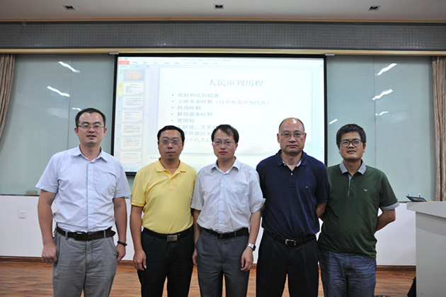 欲知大道,必先为史。2016年6月30日晚,厦大信实论坛之“如何将法治的灵魂装到一栋古建筑中——中国法院博物馆布展思路及部分珍贵法治文物简介”在我院B137室顺利举办。讲座由最高人民法院中国法院博物馆创馆人员、文物处负责人王江龙老师主讲,法律史教研室吴旭阳老师主持。厦门市思明区人民法院副院长张嵘法官、厦门市中级人民法院行政装备处处长郑金雄法官、厦门市中级人民法院研究室副主任黄鸣鹤法官、法律史教研室主任周东平教授参与座谈,法律史与法学理论专业硕士生及外专业学生到场聆听。