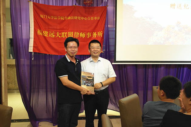 酒过三巡,肴核既尽,远大律所的李毅阳律师走到台前,他丝毫没有吝啬言词,对历届金融法毕业生大加赞赏,也感谢刘老师为远大所输送优秀人才,同时希望毕业生们要跟各地校友会多联系。随后由刘志云教授代表金融法研究中心向远大律所的陈继东主任赠送了精美的纪念画册。画册记录着这一年里属于我们的点点滴滴,它们所汇聚的记忆海洋也必将成为属于你我的最美回忆。