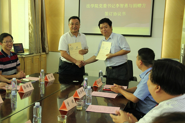紧接着,法学院党委书记李智勇和捐赠方代表签订协议书,捐赠方向学院赠送了转账支票,双方共同庆贺此项基金的圆满设立。所有议程在祥和欢笑声中拉下帷幕。