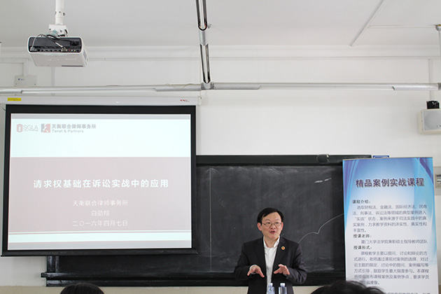 2016年4月7日,由厦门大学法学院主办、大学生法律援助中心承办的《精品案例实战课程》第四讲在法学院B519成功举办。此次课程由厦门大学法学院刘学敏老师主持,邀请了福建天衡联合律师事务所执行主任、高级合伙人白劭翔律师担任主讲人。