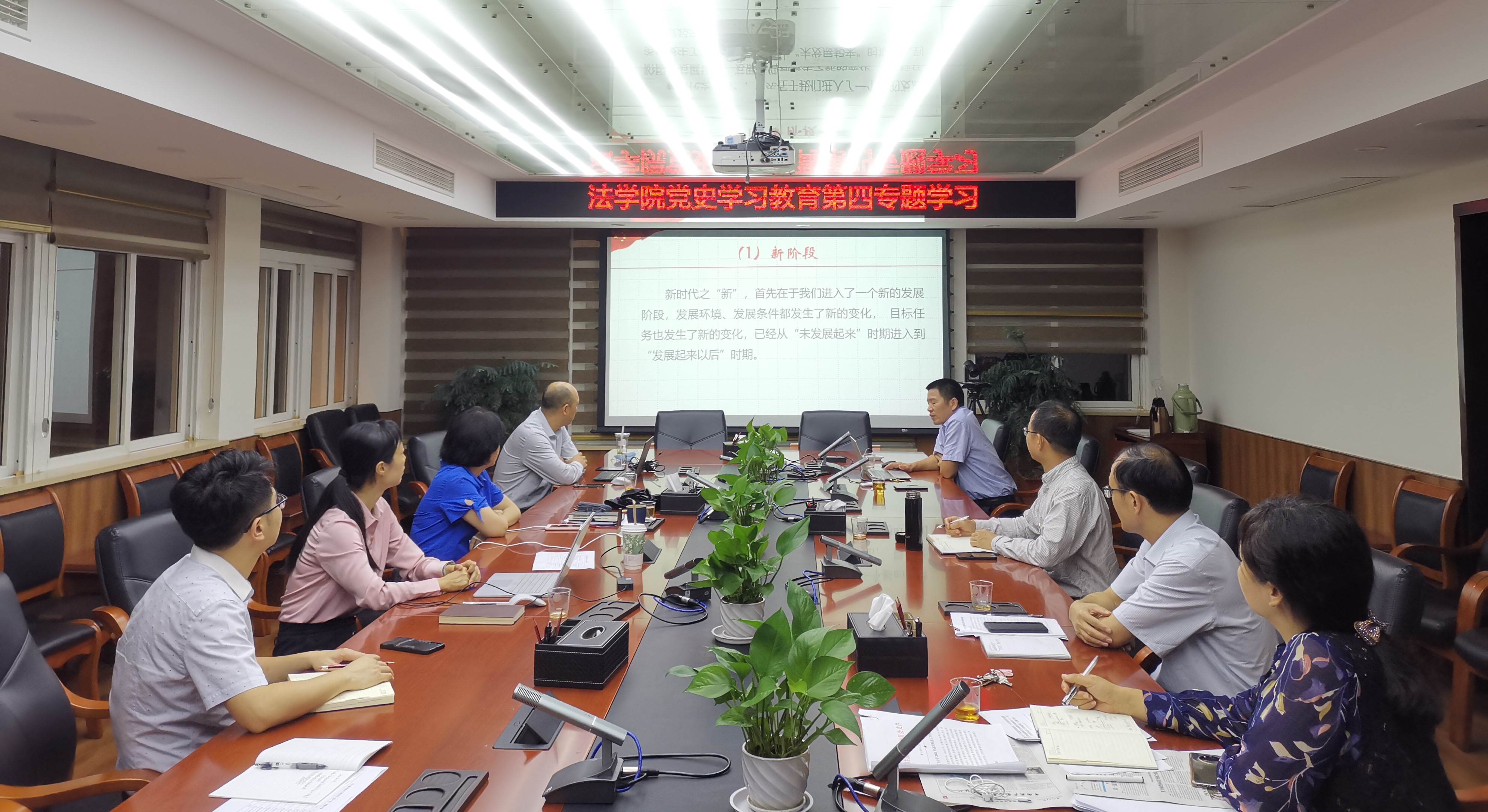 6月24日下午,法学院党委理论学习中心组举行党史学习教育第四次专题学习会,主题为“党的十八大以来的历史”。学院党委书记许和山就《新时代新思想新征程新使命——习近平新时代中国特色社会主义思想》作专题发言。