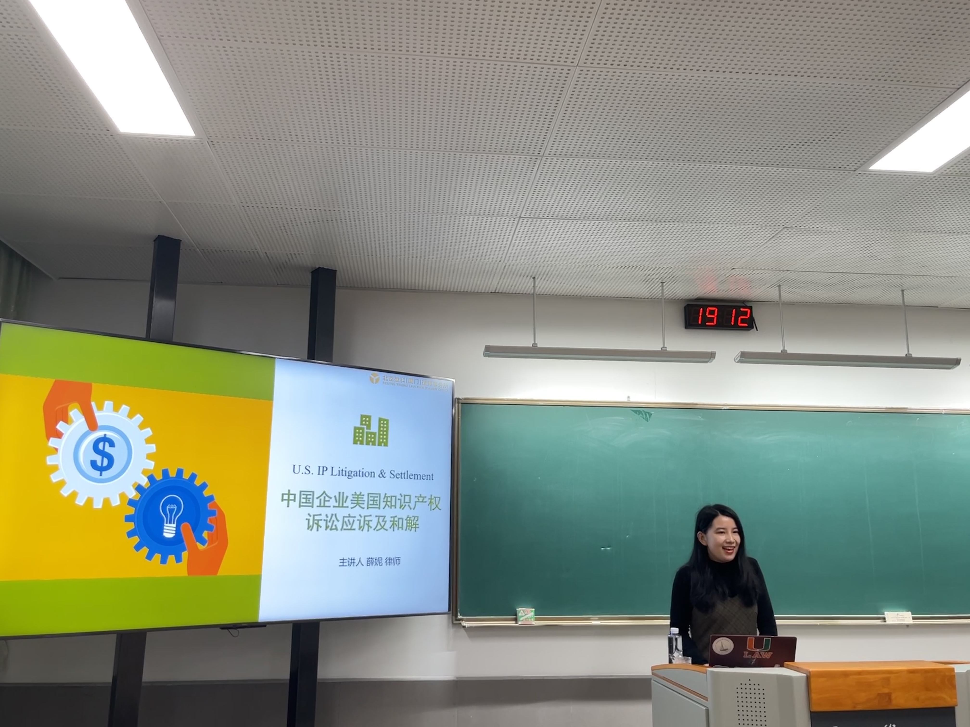 2023年6月11日晚,应厦门大学法学院法与政治经济学研究中心主任毛海栋老师邀请,北京盈科(厦门)律师事务所薛妮律师在法学院A203教室做了题为“中国企业美国知识产权诉讼应诉及和解”的精彩讲座,北京盈科(厦门)律师事务所股权高级合伙人林键律师以及法学院数十位硕士研究生参加了本次讲座。