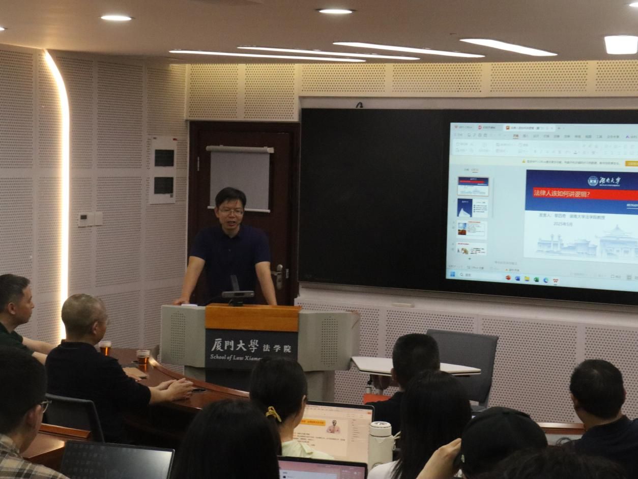 2025年5月23日晚19时至21时,受厦门大学法学院刘志云教授邀请,湖南大学法学院黎四奇教授、中南大学法学院丁亮华教授莅临我院,并于法学院C420会议室围绕以“法律人该如何讲逻辑”、“我国专门法院设置的规范路径”主题进行演讲与讨论。本次讲座由厦门大学金融法研究中心主办。