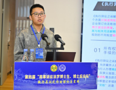 南京大学法学院博士研究生李东洋以《执行异议之诉中商品房消费者超级优先权适用规则研究》为题报告。李东洋博士关注到《执行异议之诉解释》未对其与相关司法解释的关系进行明确调整,不同司法解释对商品房消费者超级优先权适用规则的规定存在差异,潜藏着司法不统一的风险。对于该问题李东洋博士试构建一套执行异议之诉中商品房消费者超级优先权的适用规则。李东洋博士认为商品房消费者超级优先权在适用条件上不应设置“消费者名下无其他用于居住的房屋”的限制条件。他认为物权期待权和居住权均有不足,商品房消费者超级优先权的本质应属于基于法政策的特殊债权,是司法机关以司法解释实现消费者权利保护特定目的的工具,是典型的法政策产物。李东洋博士于三方面提出商品房消费者超级优先权适用的程序规则,一则可通过事实推定和证明责任制度助力购房目的用于居住的司法认定,二则借助诉的客观预备合并制度厘清房屋交付请求权和价款返还请求权的行使顺位,三则应用诉的强制合并制度对执行异议之诉的审理范围予以特定化。